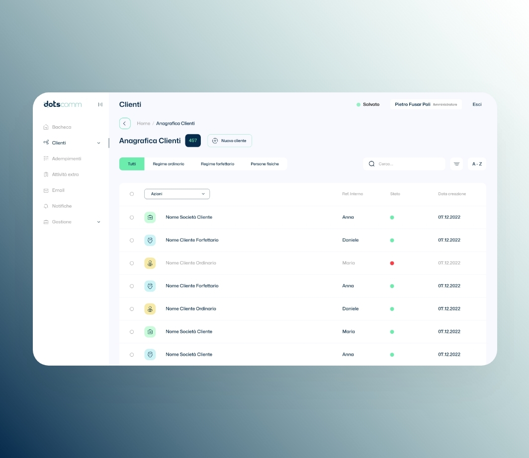 Dotscomm è un canale unico e facilmante fruibile per lo scambio di dati ed informazioni tra consulente e cliente