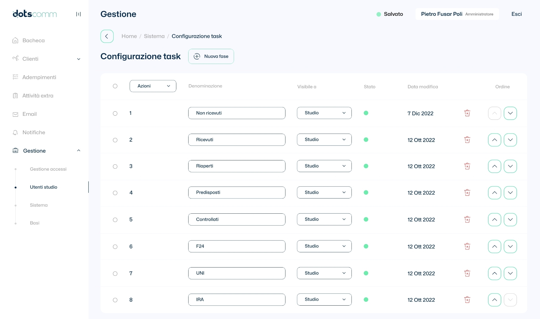 Dotscomm è anche uno strumento per lo studio professionale per l'organizzazione del lavoro e dei task